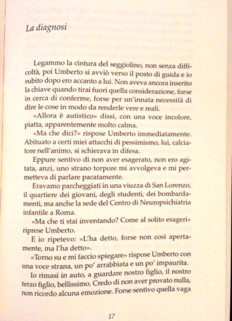 “Legammo la cintura del seggiolino, non senza difficoltà, poi Umberto si avviò verso il posto di guida e io subito dopo ero accanto a lui. Non aveva ancora inserito la chiave quando tirai fuori quella considerazione, forse in cerca di conferme, forse per un’innata necessità di dire le cose in modo da renderle vere e reali. …”