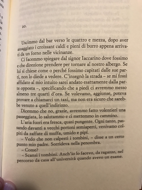 – Vedo che non calpesti i tombini – disse ad un certo punto mio padre. Sorrideva nella penombra.