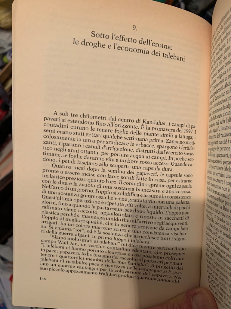 “Siamo molto grati ai talebani – mi dice mentre sarchia il suo campo Wali Jan, un vecchio contadino sdentato che prosegue – i talebani ci hanno portato sicurezza e così possiamo coltivare in pace i papaveri. Io ho bisogno del raccolto di papaveri per mantenere i quattordici membri della mia famiglia.”