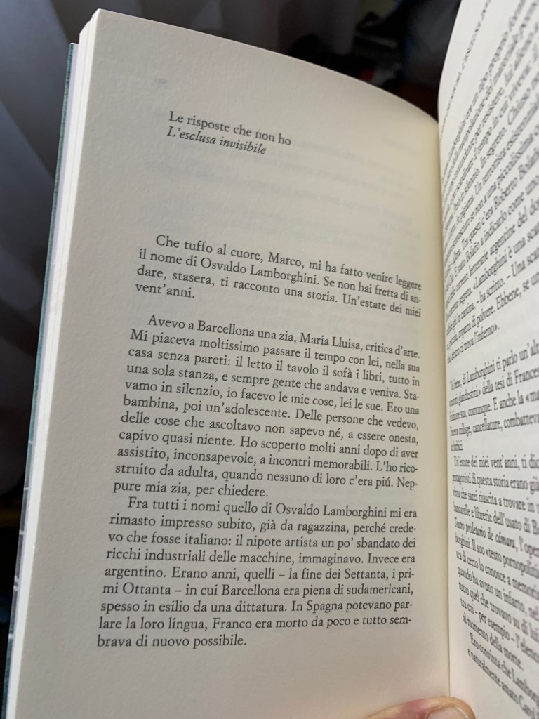 “Avevo a Barcellona una zia, Maria Lluisa, critica d’arte. Mi piaceva moltissimo passare il tempo con lei, nella sua casa senza pareti: il letto il tavolo il sofà i libri, tutto in una sola stanza, e sempre gente che andava e veniva.”