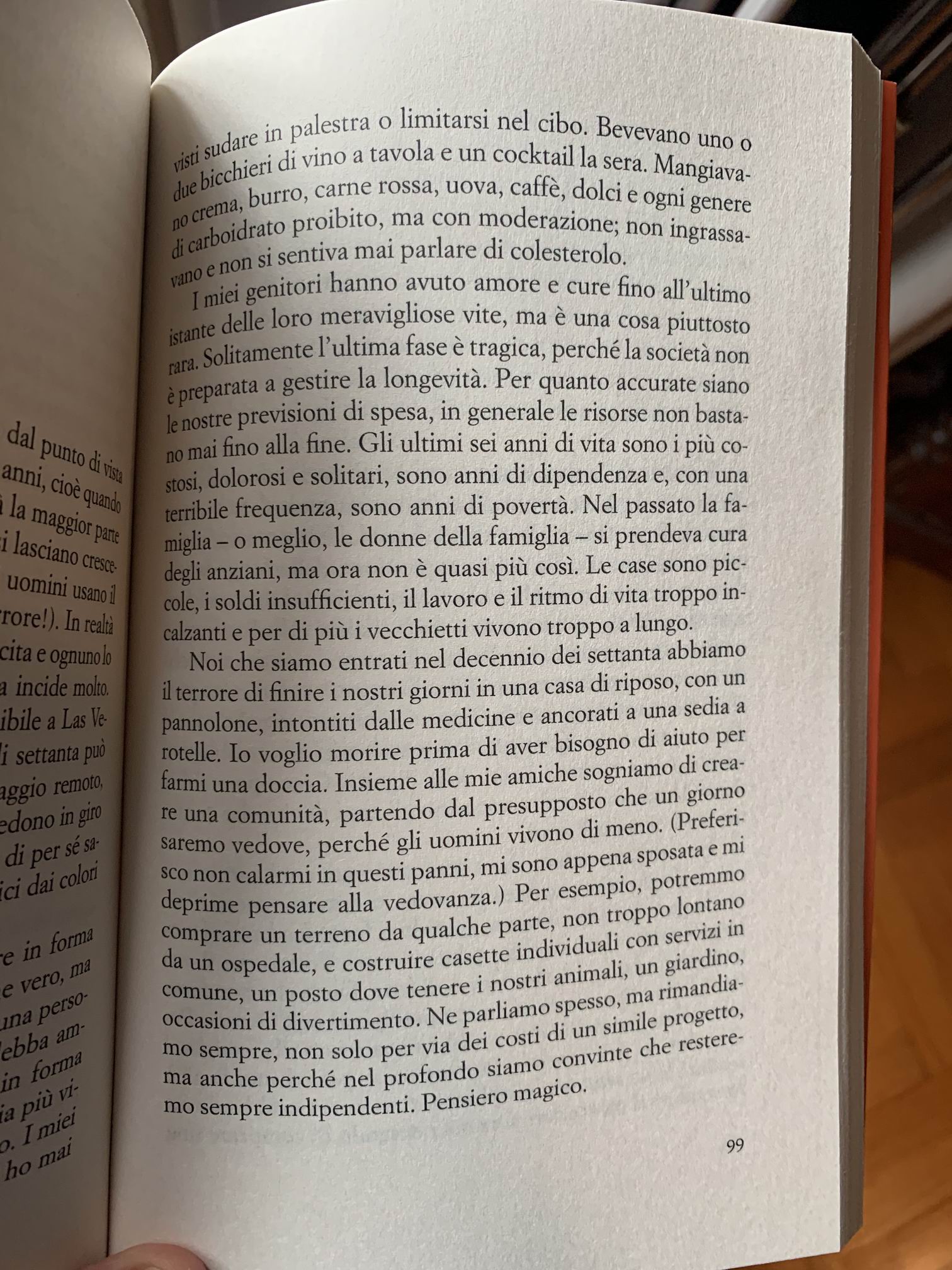 “I miei genitori hanno avuto amore e cure fino all’ultimo istante delle loro meravigliose vite, ma è una cosa piuttosto rara. Solitamente l’ultima fase è tragica perché la società non è preparata a gestire la longevità.”