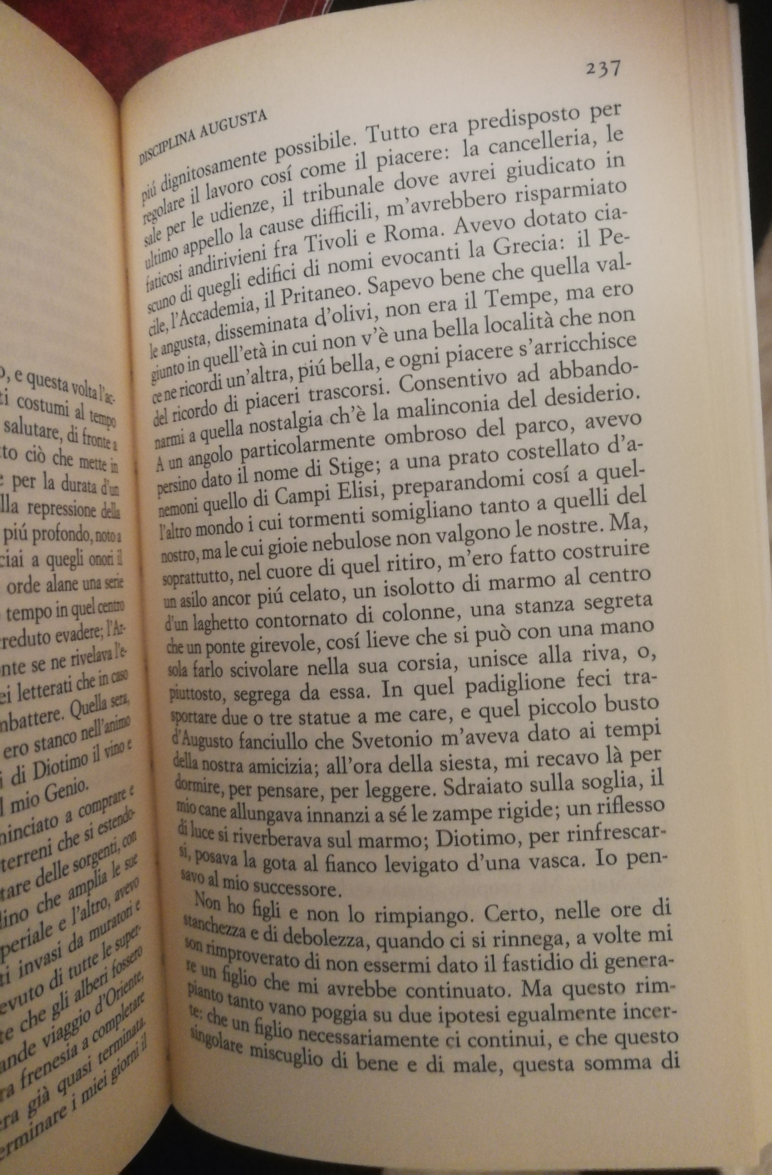 «Mi sentivo responsabile della bellezza del mondo», dice di sé Adriano, un personaggio cosí raffinatamente calato nella sua epoca, eppure cosí vicino al tormento di ogni uomo, di ogni tempo, nell’accanita ricerca di un accordo tra felicità e logica, tra intelligenza e fato.
