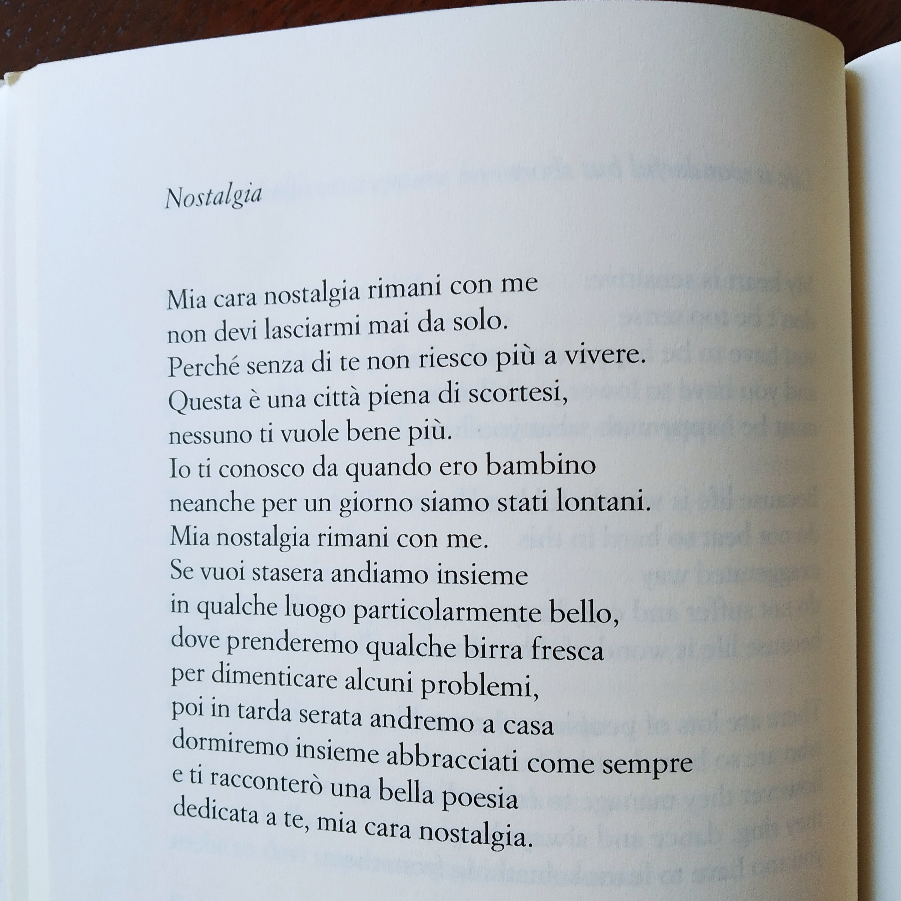 “Mia cara nostalgia rimani con me.”