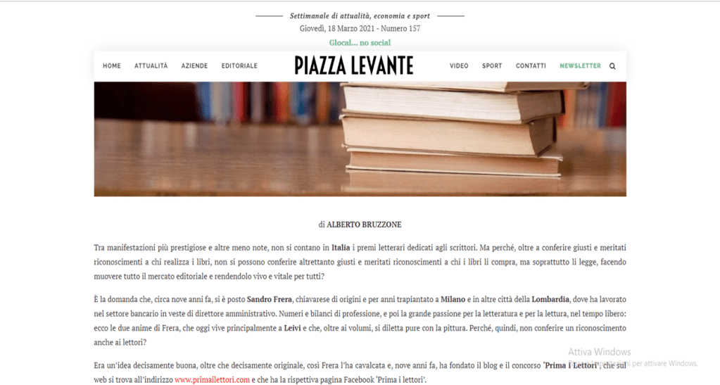 Piazza Levante, settimanale online, questa settimana parla di noi. L’articolo a firma di Alberto Bruzzone inizia così: