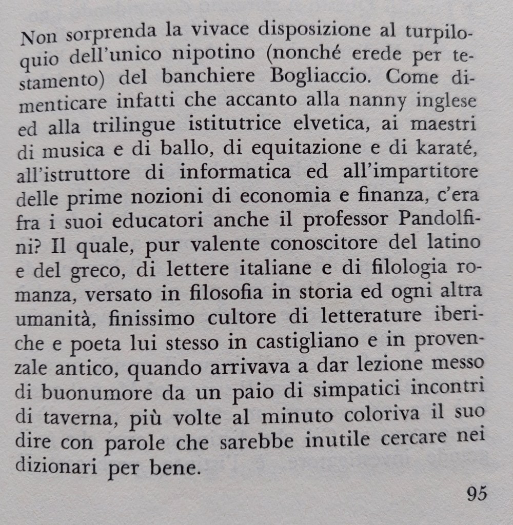 Egnocus è un bambino che vive circondato da amici animali sulla Riviera ligure. I genitori lo chiamavano Gnocco, nome a lui sgradito perché triviale. Così passarono a chiamarlo Egnocus, perché «un po’ di latino e un po’ di mistero aggiungono sapore alla vita». Gli Efferati sono malvagi delinquenti che vogliono rapire il prediletto nipote del banchiere Bogliaccio «dagli occhi di ghiaccio». E vorrebbero anche rapire Egnocus, che però è una preda meno ricca. Una triste storia dei nostri giorni, penserà il Lettore. E invece no: sotto le spoglie di un giallo truculento, questa è una favola piena di allegria. Qui, addirittura, quanto più la storia si aggrava e aggroviglia, tanto più ci sentiamo presi da un’irresponsabile euforia. Nulla ci mancherà degli ingredienti del poliziesco, con abbondanza di enigmi, investigatori, suspense, irruzioni, pedinamenti. Ma fra di essi, sin dall’inizio, si insinuano anche gli elementi di una favola leggerissima, dove gli animali offrono sottili consigli e incontriamo persino la Fata Turchina, con la sua invitante scollatura. Ogni volta che i personaggi si azzardano ad affondare, con greve passo, nella realtà, ne vengono sbalzati nella favola, come per volontà di un perfido folletto. E quel folletto, che è l’Autore, si rivela anche un dissipatore di ironie, malizie e allusioni. Così il Lettore si sente trascinato, sino all’ultimo, da due impulsi non del tutto nobili: quello di vedere, per pura curiosità, come il mistero si risolve e quello di ridere ancora un po’ del banchiere Bogliaccio e della leggendaria marchesa Guendalina, dell’investigatore Pironti e del professor Pandolfini, della bella Manfrilda e del pescatore Gelsomino, del signor Babas e dei poveri Efferati, nonché del cocker Piccinano e della gatta Vagabonde.