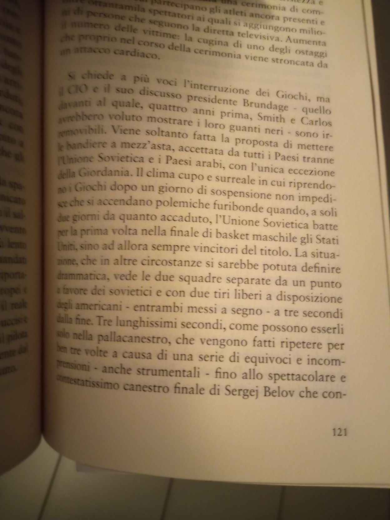 “Si chiede a più voci l’interruzione dei Giochi, ma il CIO e il suo discusso presidente Brundage – quello davanti al quale, quattro anni prima, Smith e Carlos avrebbero voluto mostrare i loro guanti neri – sono irremovibili. Viene soltanto fatta la proposta di mettere le bandiere a mezz’asta, accettata da tutti i Paesi tranne Unione Sovietica e i Paesi Arabi, con l’unica eccezione della Giordania.”