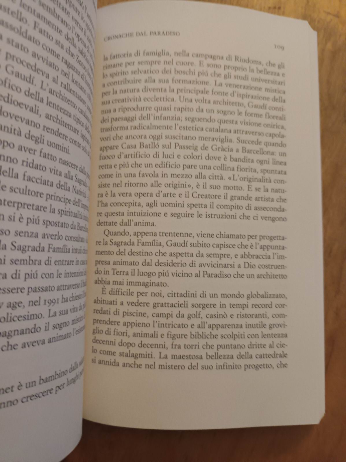 “Quando, appena trentenne, viene chiamato per progettare la Sagrada Familia, Gaudì subito capisce che è l’appuntamento del destino che aspetta da sempre, e abbraccia l’impresa animato dal desiderio di avvicinarsi a Dio costruendo in Terra il luogo più vicino al Paradiso che un architetto abbia mai immaginato.”