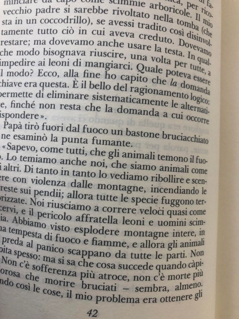 «Il libro che avete fra le mani è uno dei più divertenti degli ultimi cinquecentomila anni» ha scritto Terry Pratchett. È vero, tanto tempo è passato, da quando vissero Ernest, il narratore di questo libro, con la sua ingegnosa famiglia, dal padre Edward, che fu senza dubbio «il più grande uomo scimmia del Pleistocene», a quell’amabile reazionario di zio Vania, che tornava sempre a vivere sugli alberi, a quel viaggiatore incallito dello zio Ian, per non parlare delle ragazze. Un curioso gruppetto, che si trovò, sotto la guida del grande Edward, nella delicata situazione di chi dà all’evoluzione una spinta che non si riequilibrerà mai: la spinta da cui siamo nati tutti noi. Ragionando con impeccabile acume scientifico, nonché un delizioso humour freddo, Edward e i suoi scoprirono «alcune delle cose più potenti e spaventose su cui la razza umana abbia mai messo le mani: il fuoco, la lancia, il matrimonio e così via», sempre sulla base di una elementare esigenza: quella di «cucinare senza essere cucinati e mangiare senza essere mangiati». E naturalmente non mancarono le dispute e i crucci, perché ogni volta si poteva discutere se quelle nuove invenzioni erano davvero buone o cattive, se non rischiavano di sfuggire al controllo e soprattutto se non andavano un po’ troppo contro la natura. Mah…