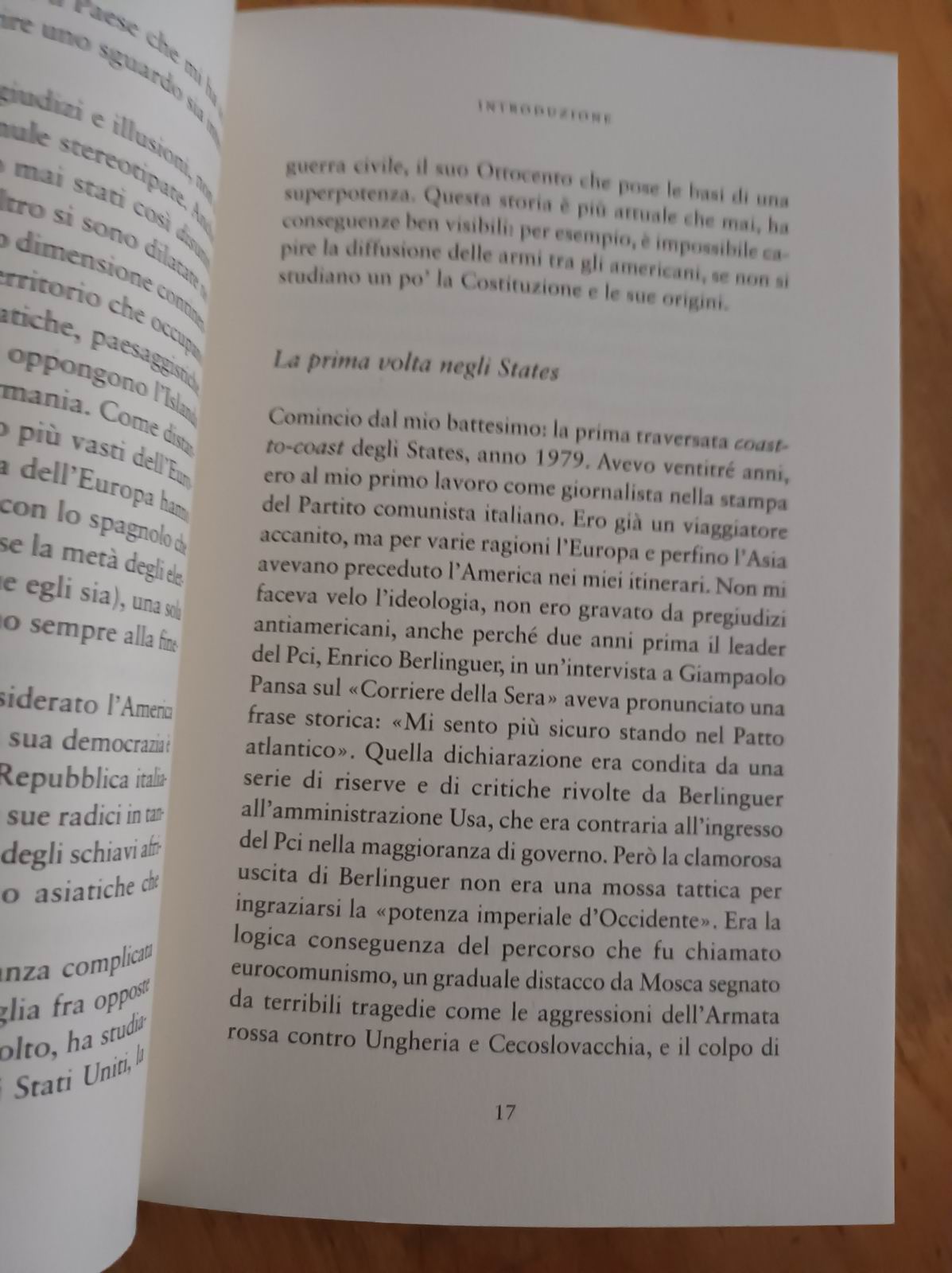 “Quando ebbe inizio la mia vita americana, al passaggio del millennio, si stava consolidando un «ordine mondiale» noto come globalizzazione, e che era stato concepito soprattutto dalla classe dirigente americana. All’epoca io abitavo in uno dei laboratori di quell’esperimento: a San Francisco, nella tecnopoli che è la capitale della Silicon Valley. Attratti dalla prima rivoluzione digitale, passavano di là degli italiani che dopo un breve soggiorno erano convinti di avere capito tutto, e al loro ritorno in patria spiegavano perché internet avrebbe reso il mondo migliore. Gli stessi ingenui ammiratori dell’universo digitale made in Usa, vent’anni dopo, si sono convertiti a visioni apocalittiche e distopiche. L’ordine mondiale americanocentrico è entrato in una crisi profonda, ma quelli che vogliono abbatterlo non hanno le idee chiare su ciò che dovrebbe sostituirlo.”