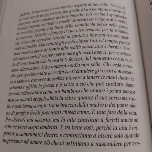 Cristina di questo libro ci scrive: “Il libro parla di un professore di scienze, non vedente da 5 anni a causa di una malattia, che riprende in mano la sua vita tornando ad insegnare ad una classe di ragazzi considerati “problematici” e che devono affrontare la maturità. Non potendoli osservare nei gesti, lui s’inventerá l’Appello: ogni ragazzo dovrà raccontare una parte di sé e lui potrà toccare il loro volto per poterli immaginare.