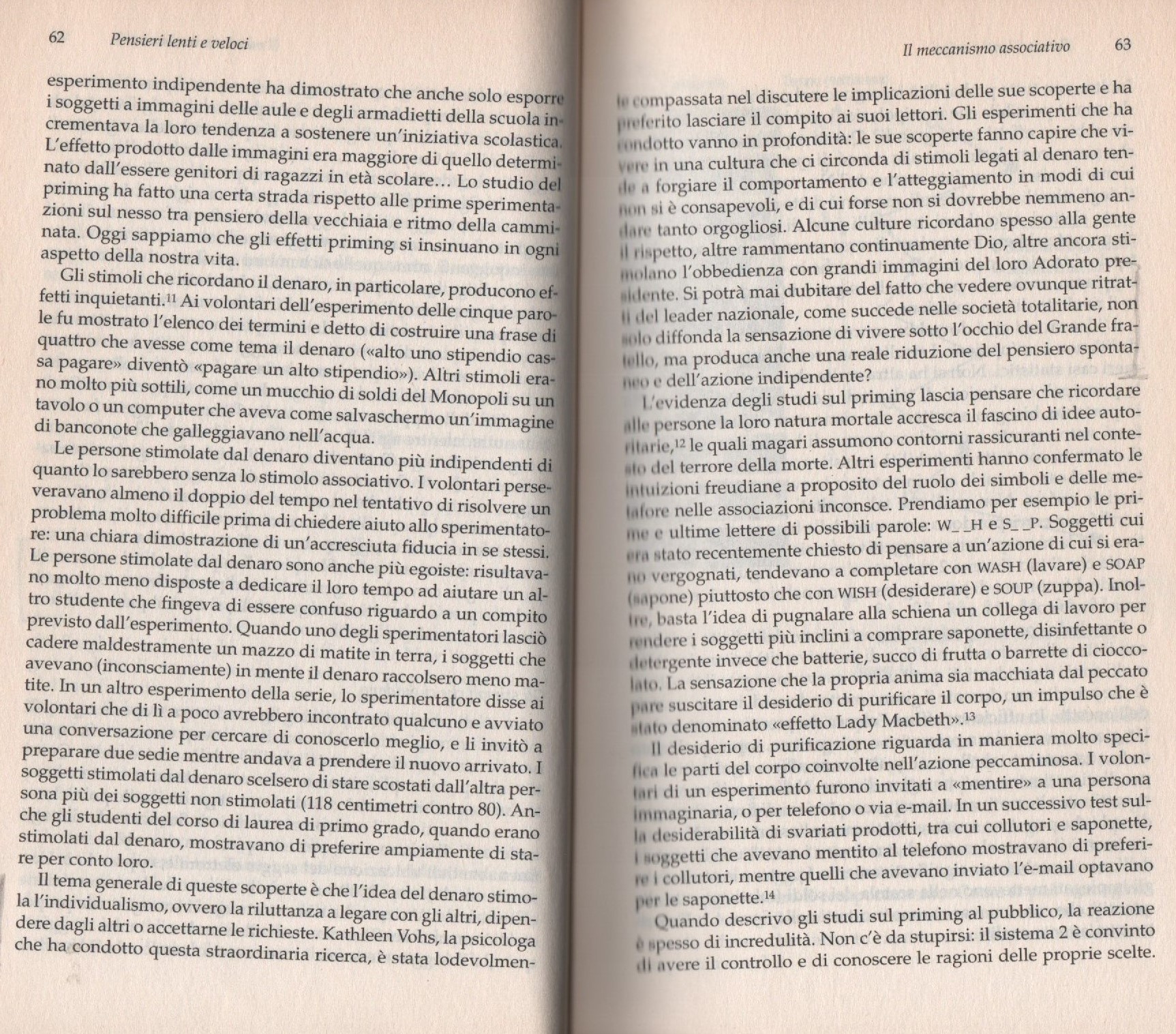 L’autore, premio Nobel 2002 per l’economia, ricorrendo ad esempi empirici e a risultati di studi e ricerche disegna una mappa del funzionamento del pensiero, suggerendo anche modalità per contrastare i meccanismi mentali veloci che inducono in errore e sollecitare quelli più lenti ( e pigri ) che favoriscono il ragionamento.”