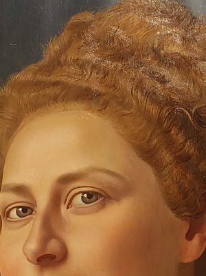 Fatto sta che da quella scuola emerse tutta una generazione di pittori di grande capacità tecnica (vedi tra le fotografie qui sotto la meravigliosa capigliatura di una giovane donna) che ancorarono il movimento artistico italiano più alla sua memoria ottecentesca e settecentesca (che a sua volta poggiava sulle meraviglie dei seicento) che ai nuovi linguaggi che man mano fiorivano altrove.