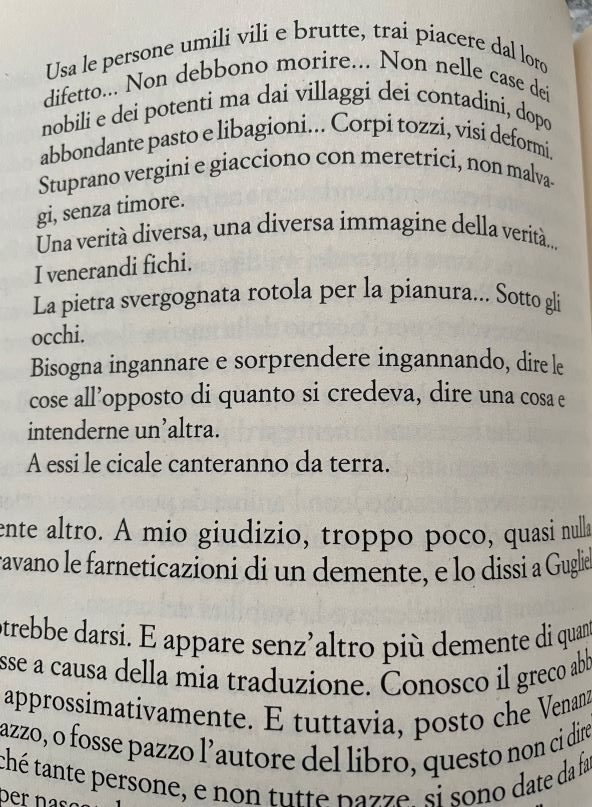 A questo proposito Rosa ci scrive: “Apparentemente un giallo ambientato nel medioevo e che Umberto Eco ha odiato. Un capolavoro che vale la pena leggere. Una bellezza nel linguaggio e nella parola che solo pochi altri libri hanno raggiunto. Lettura intrigante, investigativa per il francescano Guglielmo e il suo allievo Adso nel monastero benedettino dove alcuni monaci trovano inspiegabilmente la morte (presagi dell’Apocalisse ?). Uomini votati alla conoscenza con i loro vizi e le loro debolezze. Personaggi meravigliosi assetati di informazioni amanti dei libri e non solo come oggetti fisici ma col dilemma se rendere accessibile a tutti il sapere; a chi magari non ha gli strumenti necessari per filtrare determinate informazioni (quanto mai attuale !) Nel medioevo ogni aspetto della vita era legato alla religione, alla povertà di Cristo o al figlio di Dio, padrone di tutte le cose. Chiunque intraprendeva nuovi studi era peccatore e condannato come eretico. Ecco la chiave del libro : la poetica di Aristotele riguardante la commedia. “Il riso uccide la paura e senza la paura non ci può essere la fede”.”