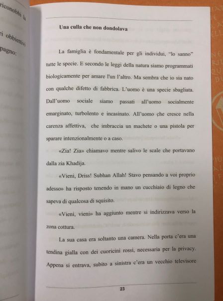 L’autore è Marouane Fakhri, uno studente in semilibertà della V B serale – percorso di II livello per adulti – dell’Istituto Tecnico Statale Aterno-Manthonè di Pescara che ha espresso le proprie idee sotto una forma diaristica che, per sua natura, porta l’autore a scrivere i ricordi così come affiorano alla memoria.