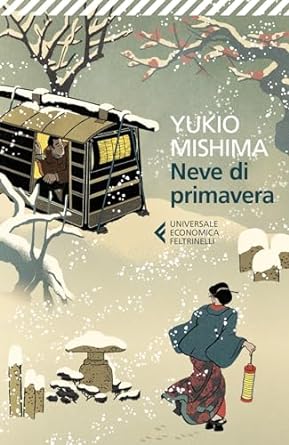 - Neve di primavera: La figura di Kiyoaki, personaggio ultrasensibile a causa di una raffinata quanto ingannevole educazione, si staglia in primo piano; Honda, l’amico, è invece sordo al richiamo dei sentimenti e proteso esclusivamente verso la vita attiva. Della nevrotica incertezza di Kiyoaki è vittima l’enigmatica e splendida Satoko, che spegnerà il suo amore disperato chiudendosi in clausura. altri personaggi complementari sono indispensabili per comprendere un Giappone dove retaggio storico, valore morale della tradizione, riti secolari, primato religioso svolgono una funzione determinante sulla sorte esistenziale del singolo non meno che della comunità.