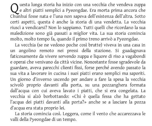 Elena & Stefy ci scrivono: “Volevamo immergerci nella cultura coreana e lo volevamo fare leggendo gli autori del posto. Purtroppo, il libro lo abbiamo abbandonato subito dopo il primo capitolo in quanto il linguaggio risultava essere volgare e poco rispettoso verso gli anziani e il pubblico femminile. Dato che per noi la lettura è soprattutto arricchirsi, abbiamo reputato di non continuare nella lettura di questo libro in quanto manca di rispetto. Siamo meravigliate di come il romanzo sia stato anche finalista dell’International Booker Prize 2023.“