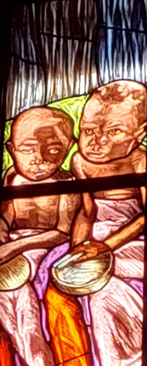L’interesse di Job sono le facce e i gesti delle persone comuni, mentre la storia religiosa è ritratta sullo sfondo, in secondo piano. Ne deriva uno spiazzamento notevole, perché quelle facce non sono rivolte a ciò che avviene alle loro spalle, ma sono dirette a noi che dalla navata della Chiesa a nostra volta li guardiamo. Si istaura, nolenti o volenti, un dialogo nostro con quelle persone, quasi che fossero lì anche loro ad osservare e cercare di interpretare e ricordare la storia sacra. Notevole, appunto.