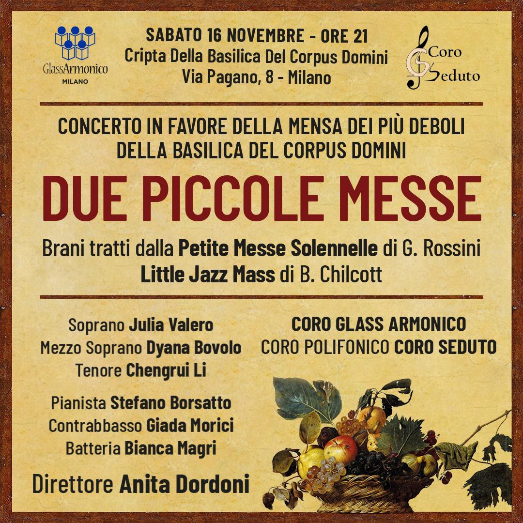 Sabato 16 novembre presso la Cripta della Basilica del Corpus Domini di Milano in via Pagano 8 i cori Glass Armonico e Coro Seduto terranno un concerto interpretando queste due famose composizioni.