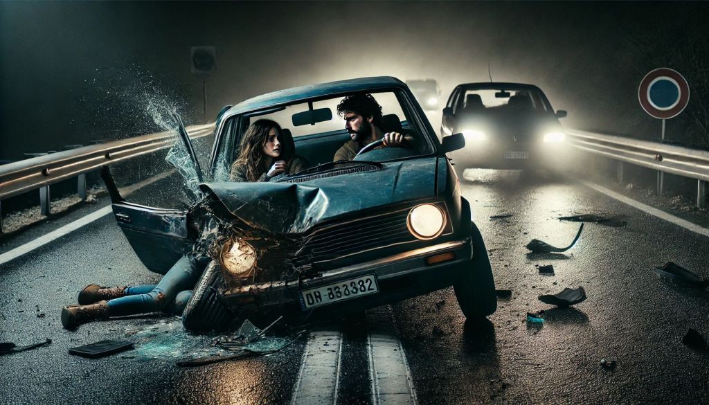 All’improvviso, un rumore improvviso di pneumatici che slittano rompe la quiete. Un’auto che arriva ad alta velocità dalla direzione opposta perde il controllo, invadendo la loro corsia. Marco prova a sterzare, ma lo spazio per evitare l’impatto è ridottissimo. In un attimo, i due veicoli collidono violentemente, lasciando solo il suono assordante di metallo che si accartoccia.