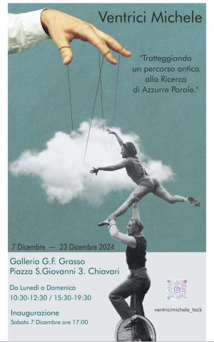 La mostra si terrà presso la Galleria G.F. Grasso, in Piazza San Giovanni 3 a Chiavari dal 7 dicembre al 23 dicembre 2024.