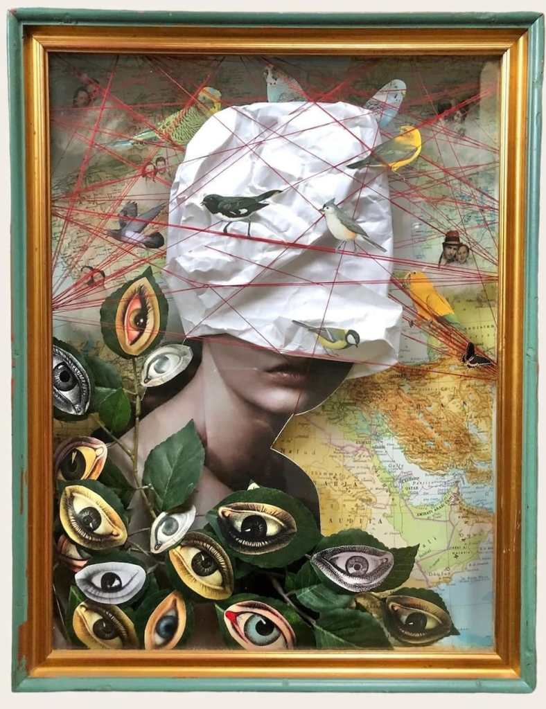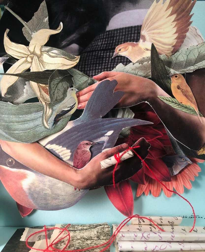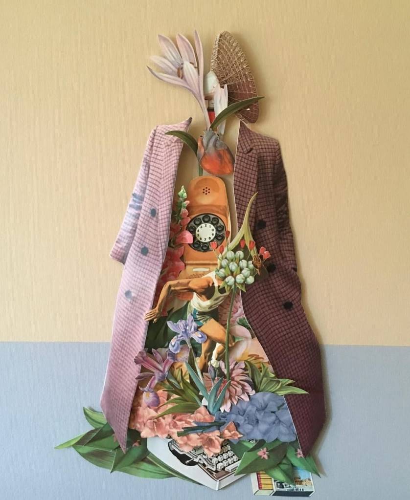 La sua scelta di utilizzare solo strumenti analogici – colla, taglierino, forbici e mani – rende ogni suo collage un’opera unica e irriproducibile, lontana dalle superfici digitali patinate, che conserva una forte carica emotiva e una riflessione sul tempo.