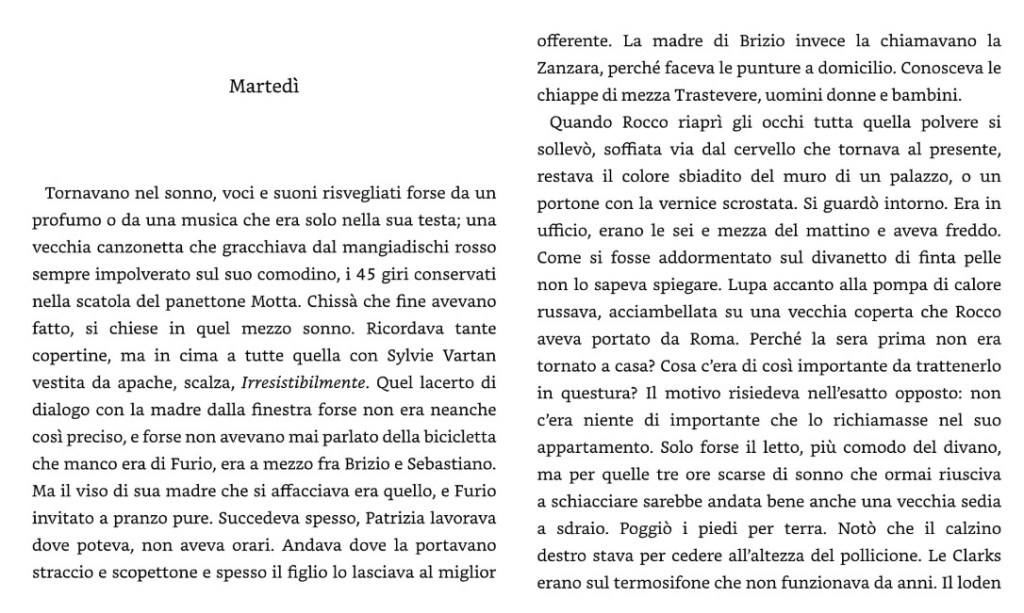 Quando viene chiamato su una strada di montagna, al vicequestore Rocco Schiavone basta uno sguardo per capire di trovarsi di fronte a una rottura del decimo livello della sua personalissima classifica. Un ciclista, infatti, è stato vittima di un incidente. Il morto si chiama Paolo Sanna, un cinquantenne che da un po’ di tempo abita in zona ma che apparentemente nessuno conosce. Dai primi accertamenti risultano subito delle stranezze. Sanna era abbiente se non addirittura ricco, ma senza occupazione, nel tempo aveva cambiato periodicamente residenze in tutto il Nord Italia, sporadiche e superficiali amicizie, qualche amore senza conseguenze, parenti lontani e poco frequentati: insomma, «una specie di ectoplasma ai margini della società». A complicare le cose, c’è il rebus del taccuino trovato nella sua abitazione, una lista di nomi, sigle e numeri indecifrabili. Il quadro è quello di un uomo in fuga. Ma una fuga lunga, senza fine, se non fosse stato per quell’urto in montagna. Per vederci chiaro bisogna indagare nel passato, andando il più a fondo possibile, un passato che fa sprofondare il vicequestore di Aosta negli anni di gioventù di un gruppetto affiatato. Rocco vorrebbe procedere come al solito, pesante come un pugno e sottile come uno stiletto, ma è di sottigliezza che ha soprattutto bisogno, anche perché si fa sempre più drammatico il timore per la scomparsa inspiegabile di una persona, una donna, a cui qualcosa di intenso lo lega.