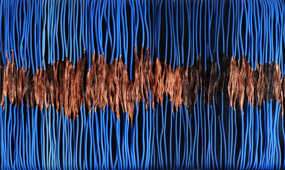 “Horst Beyer, scrive la curatrice Roberta Bani, rende tangibile la ragnatela invisibile di energie che deriva dall’intersecarsi delle vite umane. Stende ed applica pittoricamente i fili elettrici sulla tela e, chi guarda, non può sottrarsi all’incontro con le vibrazioni emotive profonde che pare di riconoscere. Per l’artista, la scelta di utilizzare questo materiale nasce dall’esigenza e dalla presa di consapevolezza del riutilizzo, ma in particolare, dalla sperimentazione, dall’esigenza di avvicinarsi all’astrazione della realtà, per coglierne l’essenza. Il cavo elettrico ha due anime, necessarie per il processo artistico, la guaina di plastica e il filo di rame, una sintesi perfetta della sostanza dell’essere umano, metafora del corpo e dello spirito in un continuo divenire. Come un componimento musicale, nota dopo nota, la materia trova il suo spazio e lascia traccia. Un reticolato di vera e pura energia vibrante. Il tempo interviene sul metallo e sulla plastica, ossida, indurisce e allontana la nitidezza dell’immagine primitiva, proprio come l’azione umana che con lentezza e rassegnazione diventa ricordo e passato. Così, il filo elettrico diventa la reificazione degli incontri, dei flussi di pensiero, dello scorrere degli avvenimenti, delle parole e dei silenzi. I tondeggianti intervalli che ritroviamo negli assemblaggi materici, diventano la dimensione dell’imprevisto, la vertigine, quel cambiamento che accompagna verso la rinascita e spinge verso il domani generando energia.”