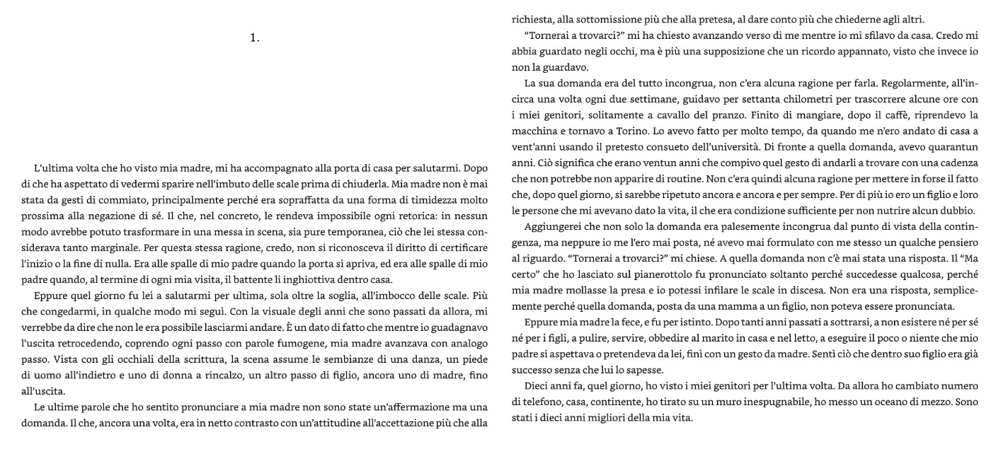 Si possono abbandonare il proprio padre e la propria madre? Si può sbattere la porta, scendere le scale e decidere che non li si vedrà più? Mettere in discussione l’origine, sfuggire alla sua stretta? Dopo dieci anni sottratti al logoramento di una violenza sottile e pervasiva tra le mura di casa, finalmente un figlio può voltarsi e narrare la sua disgraziata famiglia e il tabù di questa censura “con la forza brutale del romanzo”. E celebrare così un lacerante anniversario: senza accusare e senza salvare, con una voce “scandalosamente calma”, come scrive Emmanuel Carrère a rimarcarne la potenza implacabile. Il racconto che ne deriva è il ritratto struggente e lucidissimo di una donna a perdere, che ha rinunciato a tutto pur di essere qualcosa agli occhi del marito, mentre lui tiene lei e i figli dentro un regime in cui possesso e richiesta d’amore sono i lacci di un unico nodo. L’isolamento stagno a cui li costringe viene infranto a tratti dagli squilli di un apparecchio telefonico mal tollerato, da qualche sporadico compagno di scuola, da un’amica della madre che viene presto bandita. In questo microcosmo concentrazionario, a poco a poco si innesta nel figlio, e nei lettori, un desiderio insopprimibile di rinascita – essere sé stessi, vivere la propria vita, aprirsi agli altri senza il terrore delle ritorsioni. Con la certezza che, per mettersi in salvo, da lì niente può essere salvato. L’anniversario è prima di tutto un romanzo di liberazione, che scardina e smaschera il totalitarismo della famiglia. Ci ferisce con la sua onestà, ci disarma con il suo candore, ci mette a nudo con la sua verità. È lo schiaffo ricevuto appena nati: grazie a quel dolore respiriamo. Dieci anni fa, quel giorno, ho visto i miei genitori per l’ultima volta. Da allora ho cambiato numero di telefono, casa, continente, ho tirato su un muro inespugnabile, ho messo un oceano di mezzo. Sono stati i dieci anni migliori della mia vita.