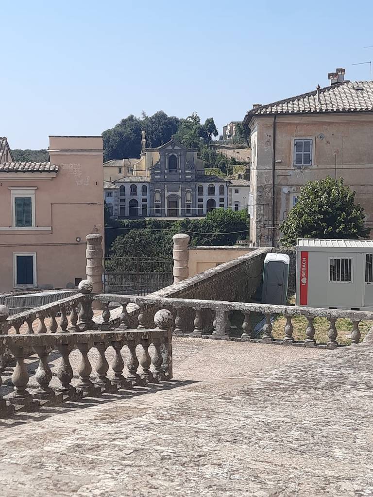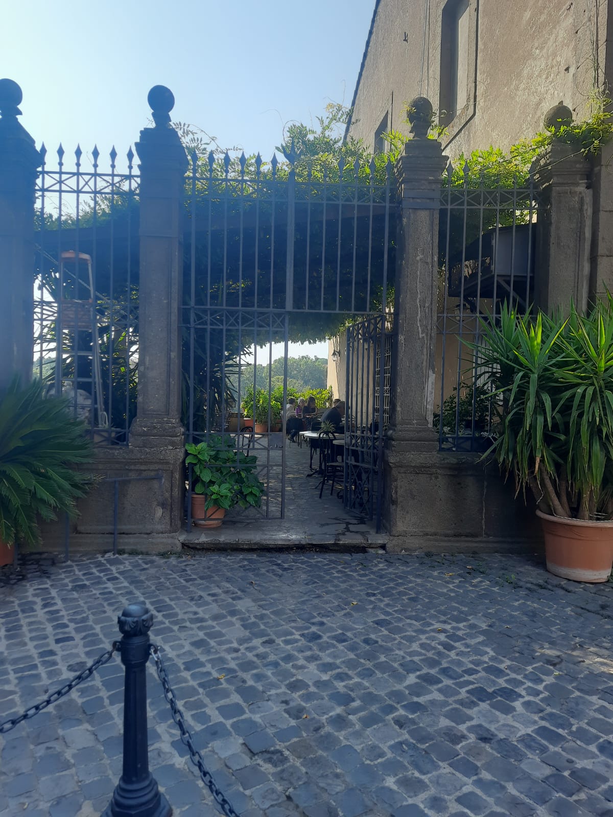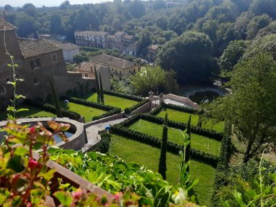 Per esempio sempre a pochi chilometri da Viterbo (e via via si comprendono meglio le ragioni di questa sosta) a Vignanello il principe Ruspoli padrone della rocca vi aveva fatto sorgere uno dei più bei giardini all’italiana del mondo. Peccato che la visita sia possibile solo nei week end e noi si fosse lì un martedì qualsiasi. In ogni caso, passando dalle stelle a più umani ambiti, anche il caffé posto all’ingresso del palazzo merita la visita col suo bel terrazzo rinfrescato da un grande glicine.