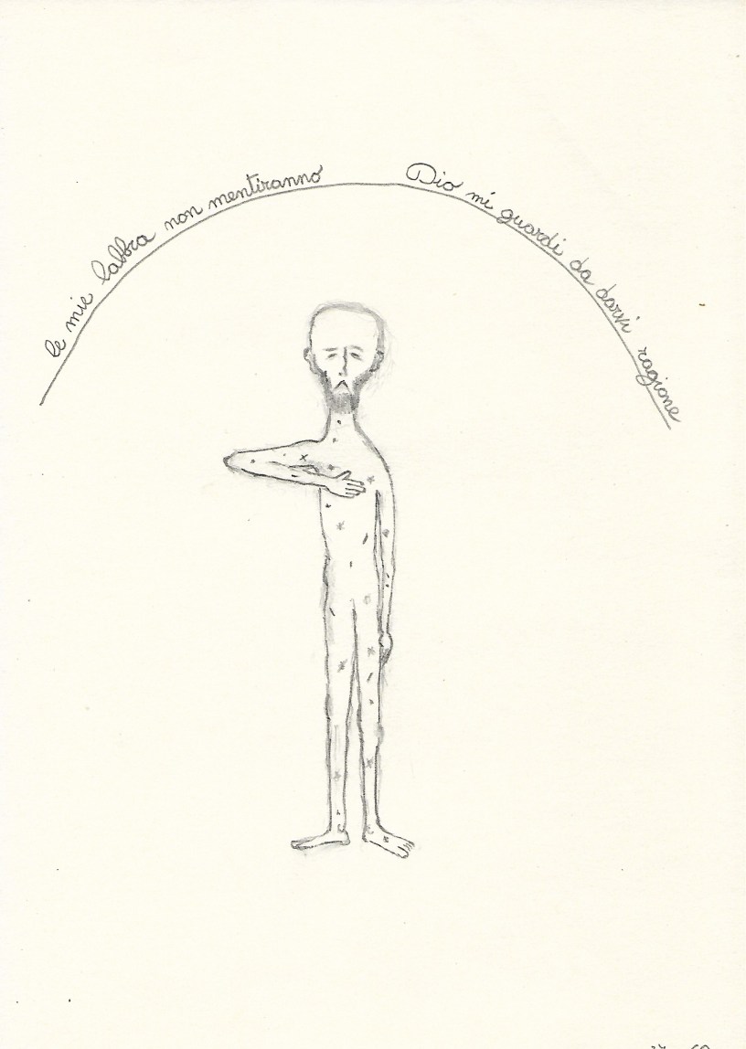 - Από καλυπτό / getto via la maschera / e nudo rimango / nella naturale fobia / per la morte, la malattia, la vecchiaia / fobia tanto comune quanto / inaccettabile / non dovremmo temere quanto è già accaduto / ma quanto di nuovo accadrà.