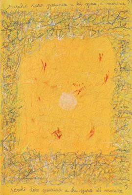 Come scrive Anna Torterolo, storica dell’arte, nella sua presentazione “Qui le parole scorrono, ripetute, cancellate, affondate in un paesaggio-colore; così incuriosiscono chi guarda inducendolo ad attribuire ad ogni vocabolo uno spessore nuovo grazie alle vibrazioni cromatiche e al ritmo del gesto. Le parole diventano poesia per spartito musicale e sembra di sentirne l’eco, che arriva da un mondo così remoto ed eppure è presente. Superfici bidimensionali si fanno profonde. Come pagine in cui il senso è solo apparentemente evidente, ma è in realtà misterioso come tutti i segni che intaccano la “buccia” multicolore della vita, come fascinosi ma illeggibili palinsesti. Astrazione? Figurazione? Possono le due strade essere perentoriamente divise? Anche nella astrazione più radicale e mistica, resta il gesto dell’artista, restano la sua mano e la sua carne, la sua parabola esistenziale. Come in Giobbe.”