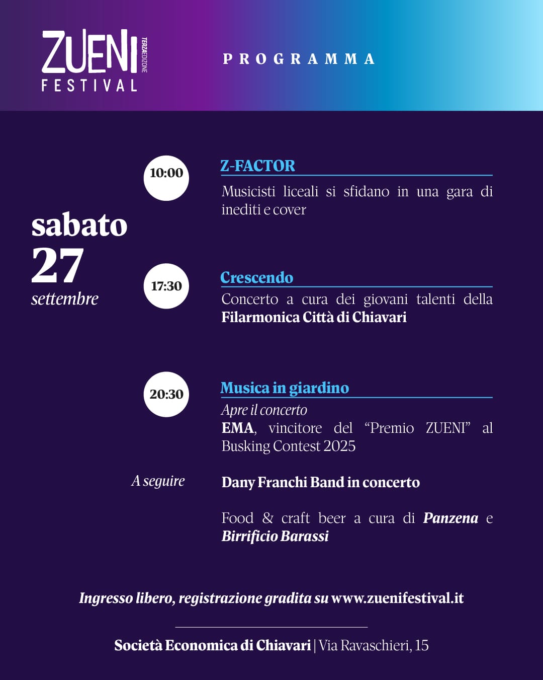 La Società Economica di Chiavari, Ente Filantropico del Terzo Settore che promuove cultura, arte, istruzione e tutela dell’ambiente nel territorio, da un paio di anni organizza a settembre questo festival per promuovere l’imprenditoria giovanile e non solo.
