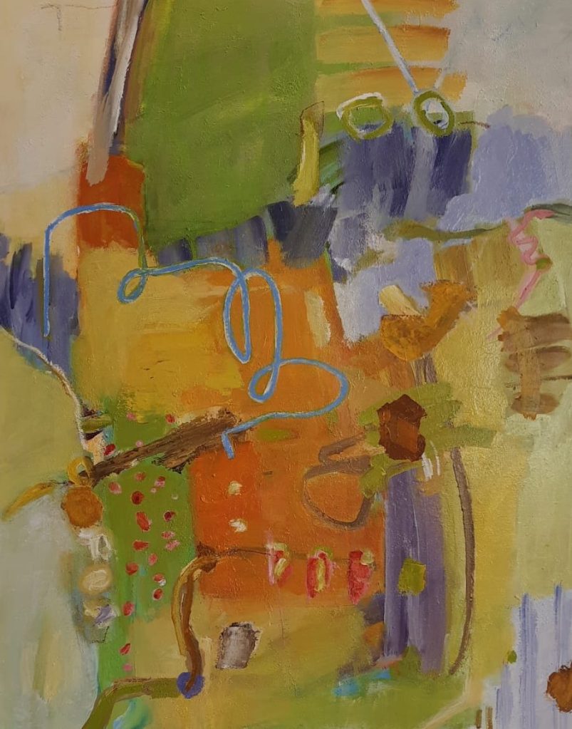 L’artista alterna l’olio su tela all’acrilico con una predilezione per l’olio che con la sua plasticità e materialità, mi riferiva, rende possibili giochi e mescolanze che gli acrilici non le permettono.