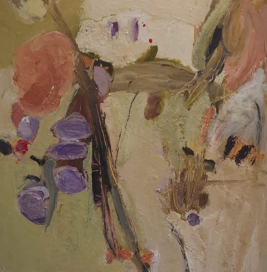 La leggerezza e la bellezza della natura si propongono con delicatezza, così come cenni di viola a tratti approfondiscono i verdi chiari e le terre accennate.
