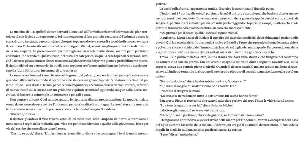 Da Paolo Pisoni riceviamo un classico come La peste di Camus.